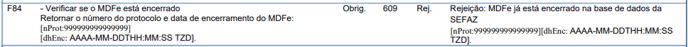 609 Rejeição: MDFe já está encerrado na base de dados da SEFAZ [nProt:999999999999999]