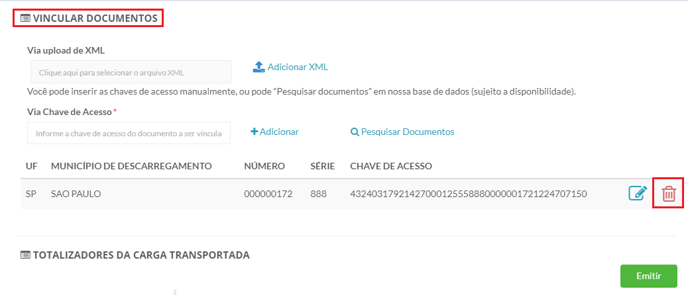 Se o tipo de emitente for ''Prestador de serviço de transporte'', não deve ser vinculado nenhuma NF-e a esse MDF-e.